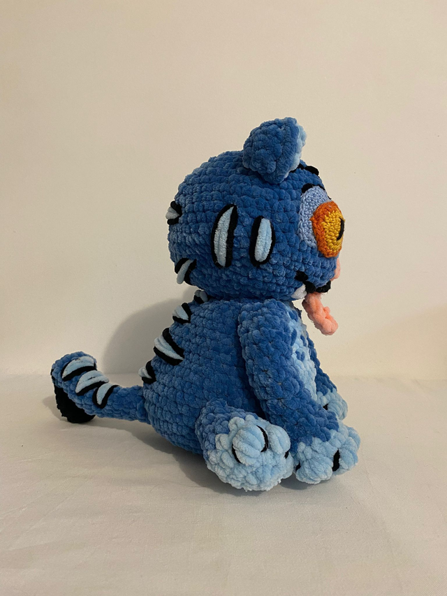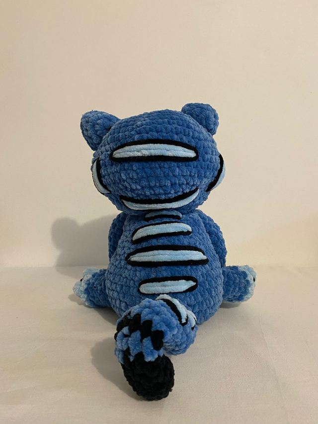 Matériel : Fil chenille (effet tout doux) et il de coton, Fil de fer épais (dans la queue du tigre)